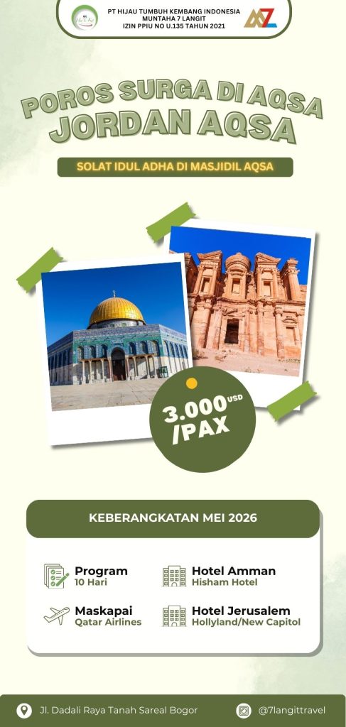 Program Jordan Aqsa adalah perjalanan wisata religi yang mengajak Anda menapaki jejak sejarah Islam di Yordania dan Palestina. Dalam program ini, jamaah tidak hanya berkesempatan beribadah di Masjidil Aqsa – masjid suci ketiga dalam Islam – tetapi juga menyaksikan langsung berbagai situs bersejarah yang sarat makna.