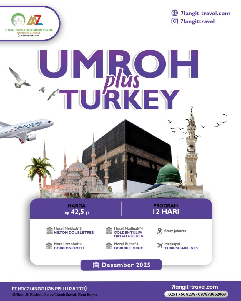 Umroh Plus Turki 2025 adalah paket perjalanan yang menggabungkan ibadah umroh di Makkah dan Madinah dengan wisata ke Turki, negara yang kaya akan sejarah, budaya, dan keindahan alam. Dalam paket ini, Anda akan menjalani ibadah umroh di dua kota suci, diikuti dengan perjalanan ke Turki untuk mengeksplorasi kota-kota seperti Istanbul dan Pamukkale.